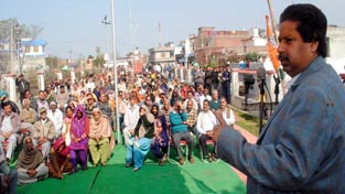 Minister for Housing, Raman Bhalla addressing a gathering at Gangyal on Sunday.