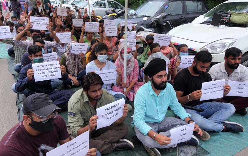 JAMMU, July 26: The selected Finance Accounts Assistant (FAA) candidates staged protest near Press Club Jammu, demanding release of final selection list.