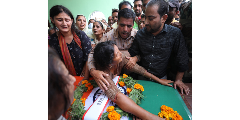 Family members of the martyr wailing over the body at their RS Pura residence on Friday. -Excelsior/Rakesh By Daily Excelsior - October 3, 2020 Share FacebookTwitterWhatsAppPinterestLinkedinCopy URLTelegramEmailTumblrReddItPrintKoo Family members of the martyr wailing over the body at their RS Pura residence on Friday. -Excelsior/Rakesh Family members of the martyr wailing over the body at their RS Pura residence on Friday. -Excelsior/Rakesh Follow our WhatsApp channel