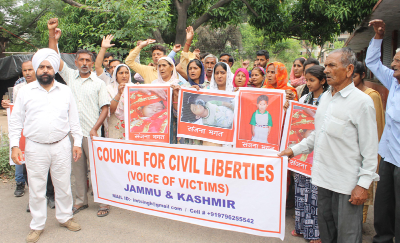 JAMMU, May 15: Family members and relatives held protest over alleged murder of a minor girl by her father.