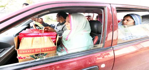 Family taking ‘Shagun’ of Sonia Choudhary from Baaspur Bungalow to Hansa, Chakroi in RS Pura on Wednesday morning.-Excelsior/Rakesh