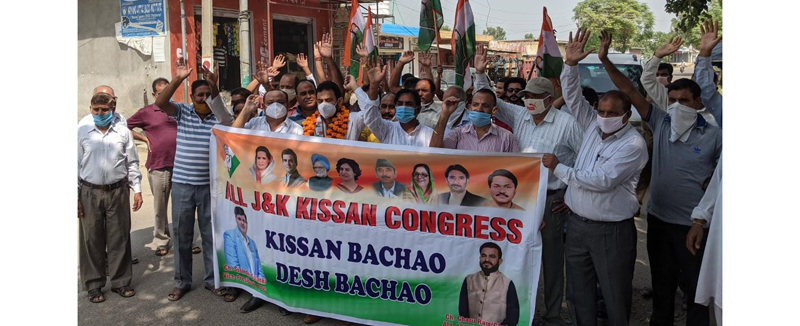 The protest was organized by Shashi Sharma PCC Secretary and Dwarka Choudhary Chief-Whip MC Jammu under the leadership of Gharu Ram, Chairman JK Kissan Congress.