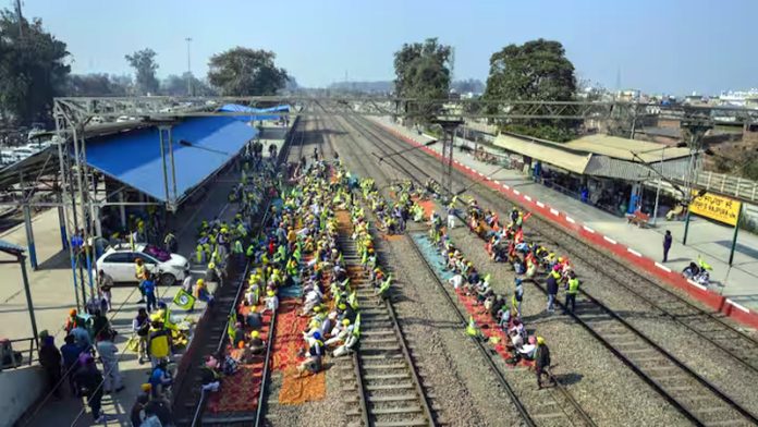 KAPURTHALA, Oct 18 : Scores of farmers blocked the railway track and stopped the Jammu-bound Somnath Express train for nearly 90 minutes at Sultanpurlodhi Railway Station here on Friday in protest against an allegedly delayed procurement of paddy.