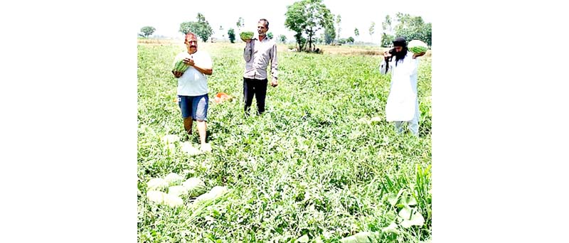 Farmers plucking watermelons in a field in Phallain Mandal area on Jammu outskirts.(UNI) By Daily Excelsior - May 23, 2020 Share FacebookTwitterWhatsAppPinterestLinkedinCopy URLTelegramEmailTumblrReddItPrintKoo Farmers plucking watermelons in a field in Phallain Mandal area on Jammu outskirts.(UNI) Farmers plucking watermelons in a field in Phallain Mandal area on Jammu outskirts.(UNI) Follow our WhatsApp channel