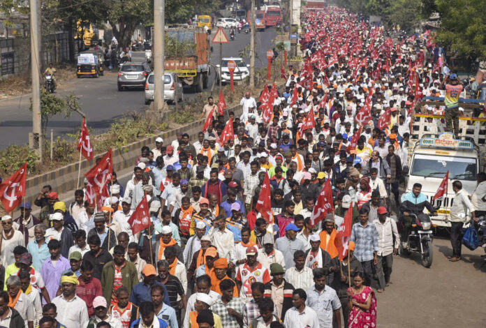 Mumbai, Jan 27: Thousands of farmers and tribal residents were marching towards Mumbai from Nashik on Tuesday to press for land rights and other demands, even as the Maharashtra government invited their delegation for talks later in the day, a representative of the protesters said.