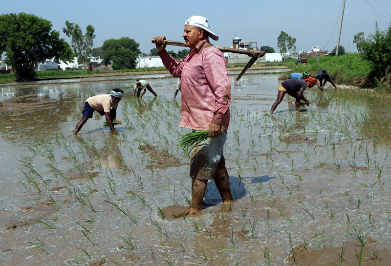 Farmers work in paddy field on the outskirts of Jammu. -Excelsior/Rakesh