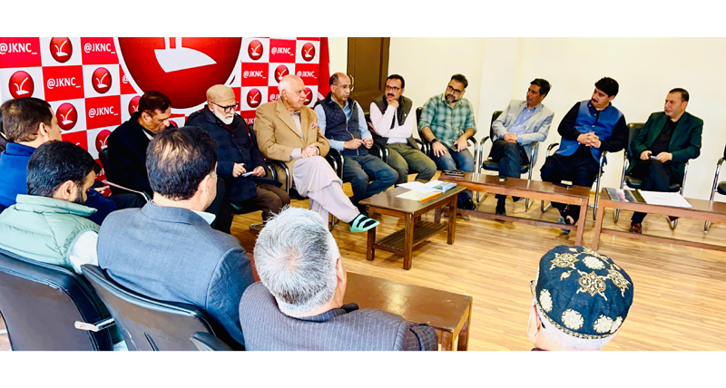 SRINAGAR, Apr 8: National Conference (NC) president Dr Farooq Abdullah today chaired a meeting with constituency Incharges of the North Kashmir Parliament seat.