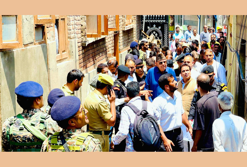 SRINAGAR, June 26: The Jammu and Kashmir National Conference President Dr Farooq Abdullah on Wednesday visited the site of the tragic Bohri Kadal Bazar Masjid fire.