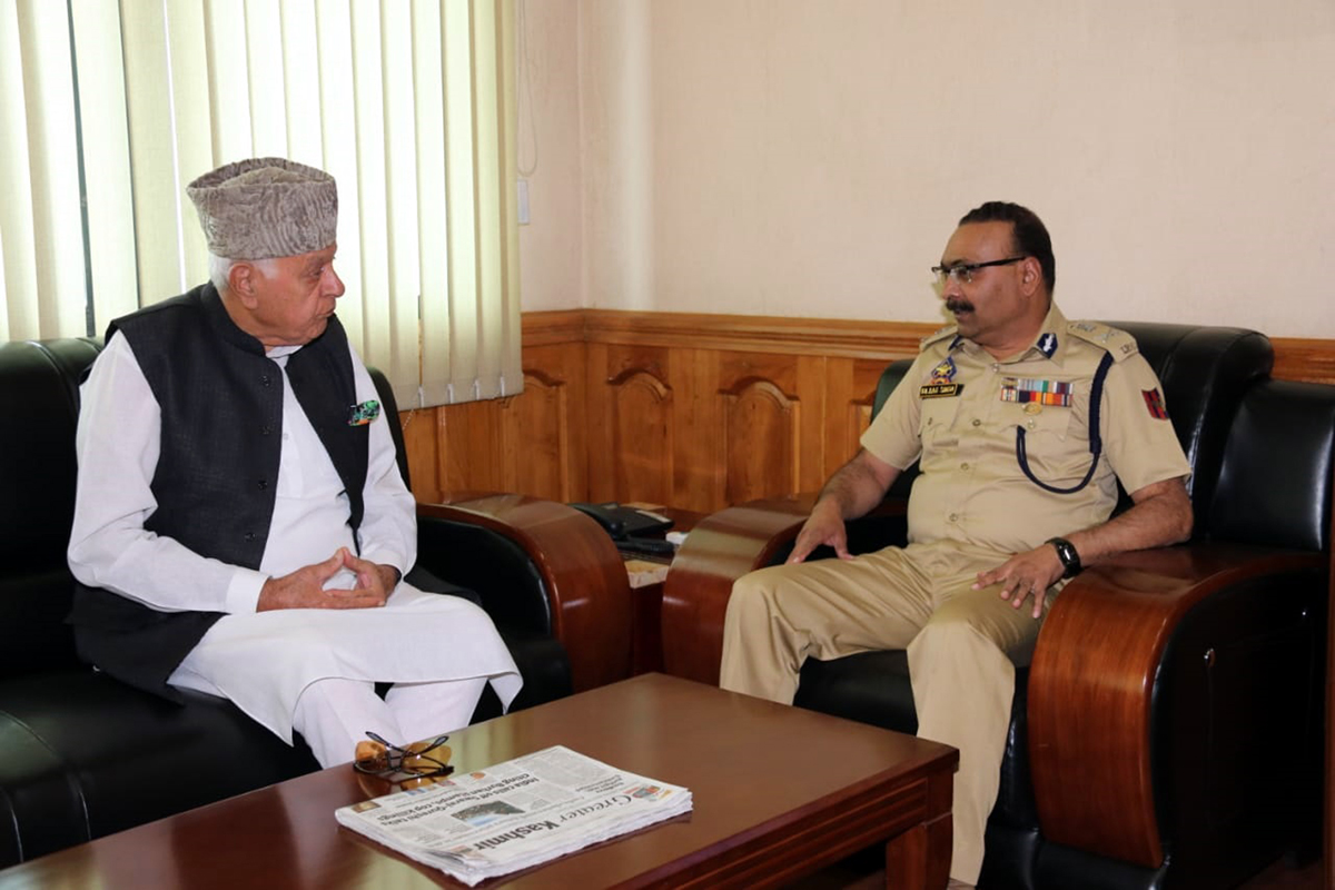 Abdullah, a Member of Parliament from Srinagar constituency, met senior officers, including Director General of Police (DGP) Dilbag Singh.