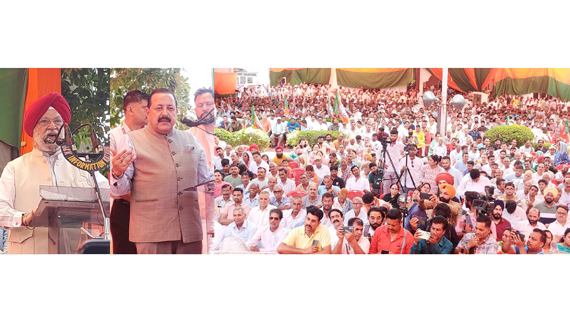 KATHUA, June 18: While Union Minister of Housing and Urban Affairs and Oil & Natural Gas, Hardeep Singh Puri said that fast industrialisation has taken place in J&K after abrogation of Article 370 by Narendra Modi Government and era of stone pelting is over, Union Minister of Sate in PMO with independent charge of Science and Technology, Dr Jitendra Singh said rising above vote bank politics pursued by opposition parties for decades together, Prime Minister in nine years ensured equitable development of every region of the country.