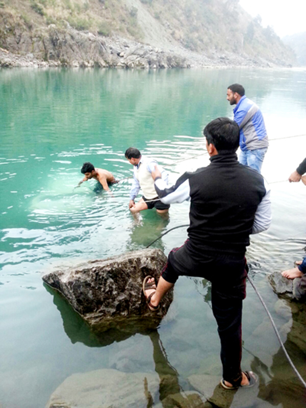 The ill-fated vehicle bearing registration number CH03-3174 was on its way to Ramban from Jammu, when the driver lost control over the vehicle and it fell into river Chenab near Jaswal Bridge in Karol area this evening on Jammu-Srinagar National Highway, resulting father-son duo getting washed away in the river.