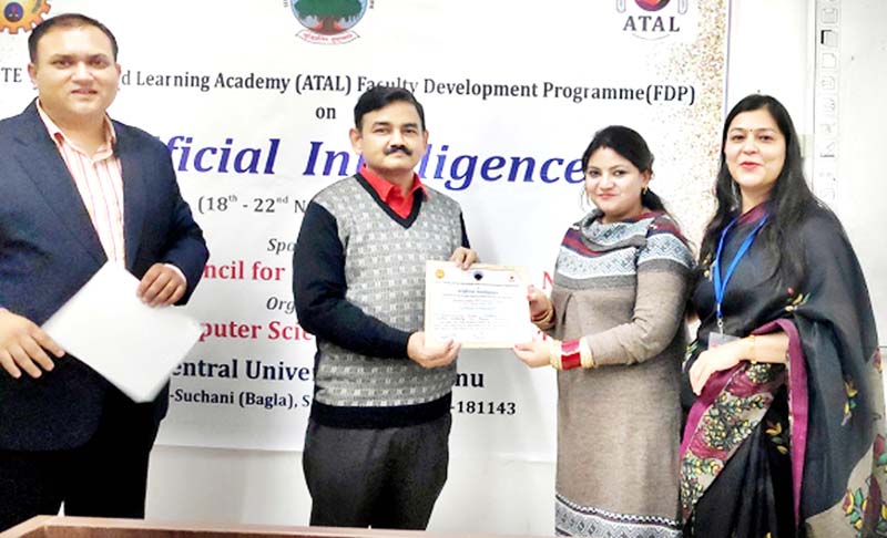JAMMU, Nov 22: Faculty Development Programme (FDP) on ‘Artificial Intelligence’, organized by the Department of Computer Science and Information Technology, Central University of Jammu, under the guidance and supervision of Prof. Ashok Aima, Vice Chancellor, in collaboration with AICTE Training and Learning (ATAL) Academy, AICTE, New Delhi, concluded today.