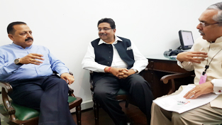 Federation of Indian Chambers of Commerce & Industry (FICCI) President Harshavardhan Neotia and Secretary General Dr A. Didar Singh calling on Union Minister Dr Jitendra Singh at New Delhi.