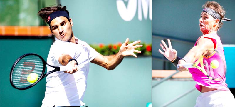 Roger Federer and Rafael Nadal in action during Indian wells at USA.