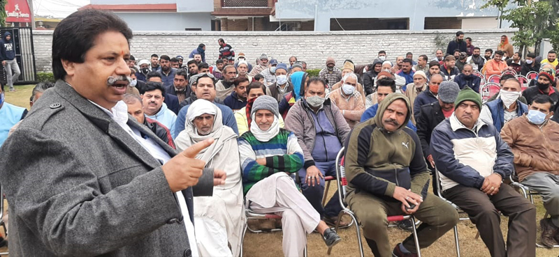 JKPCC president Raman Bhalla addressing people at Sunjwan on Sunday.