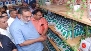 Finance Minister, Dr Haseeb A Drabu looking at products at Organic Store launched by Sarveshwar Group in Jammu. -Excelsior/Rakesh