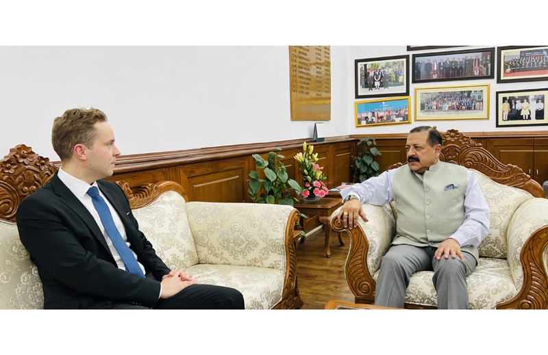 Finland Minister of Education and Culture, Petri Honkonen calling on Union Minister Dr Jitendra Singh at North Block, New Delhi on Monday.