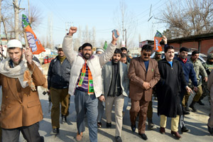 Fumed over the thrashing of its worker, the BJP today held a protest against Rashid in Pulwama and lodged a complaint with police against him. The protesters were led by Member of Legislative Council (MLC) Sofi Yousuf and were demanding strict action against Rashid.