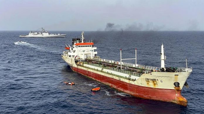 The Indian Navy’s stealth frigate INS Tabar, currently deployed in the Gulf of Oman, responded to a distress call from MT Yi Cheng 6 on Sunday, according to a spokesperson of the Navy.