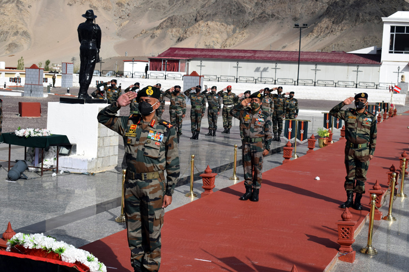 SRINAGAR, Sept 2: Army’s Fire and Fury Corps celebrated its 22nd Raising Day today at Leh with a wreath laying ceremony at Leh War Memorial to honour brave soldiers who made the supreme sacrifice during various operations in Ladakh.