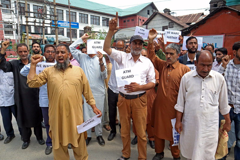 Srinagar, Aug 4: The ATM guards of J&K Bank, whose services were earlier terminated, expressed their grievances today, saying that they have been left to fend for themselves while their families suffer.