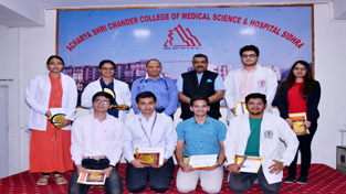 First four winners of zonal level IAP quiz posing with their certificates and mementoes at ASCOMS & Hospital in Jammu.