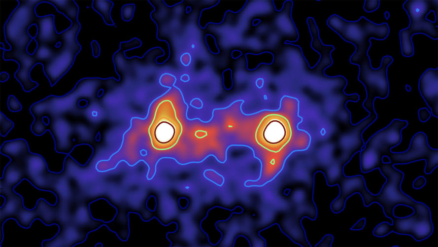 They combined lensing images from more than 23,000 galaxy pairs located 4.5 billion light-years away to create a composite image or map that shows the presence of dark matter between the two galaxies.