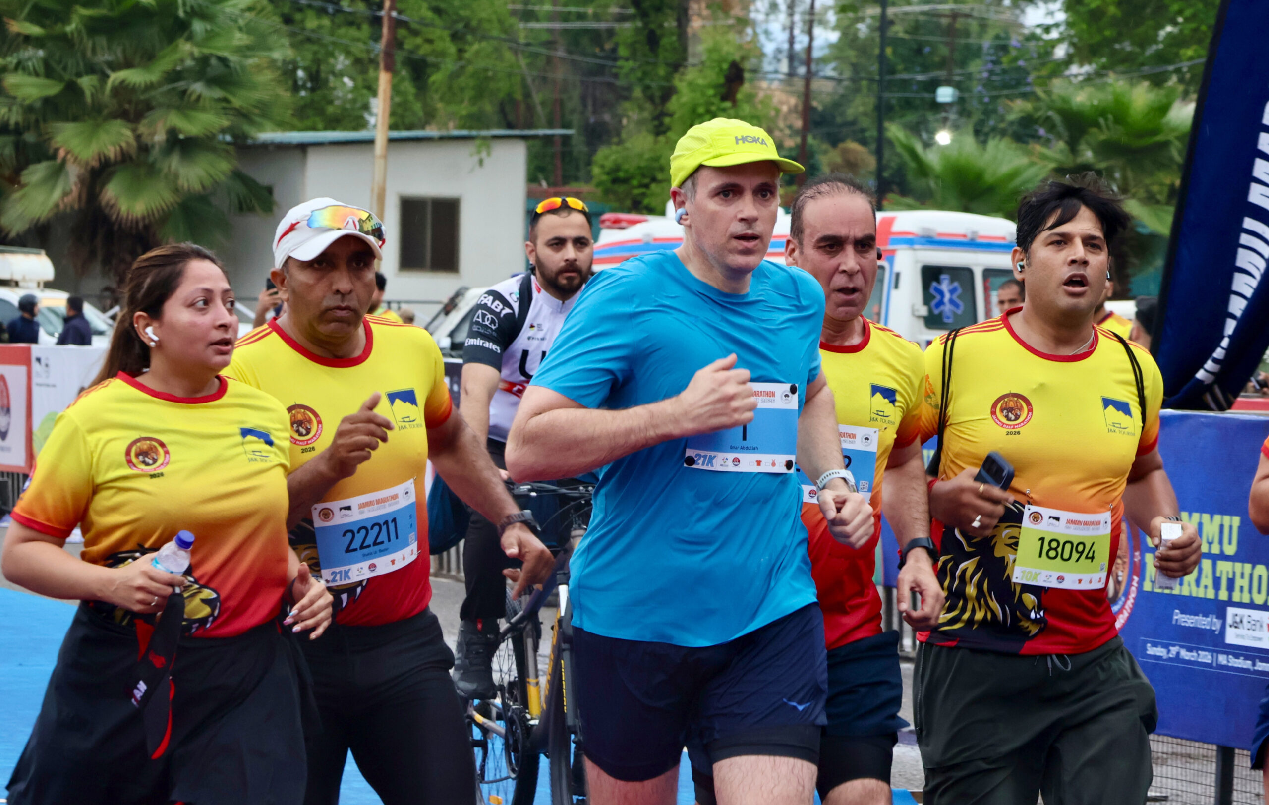 JAMMU, Mar 29: Braving incessant rain, thousands of enthusiastic runners took part in Jammu’s first-ever international marathon, flagged off by Chief Minister Omar Abdullah, who also joined the participants, here on Sunday.