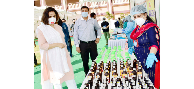 First Lady of the Union Territory of Jammu and Kashmir Dr Smita Murmu inspecting medical stalls established at quarantine centre in Samba on Saturday.