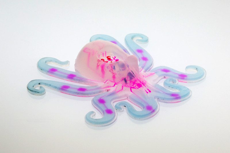“The octobot is a simple embodiment designed to demonstrate our integrated design and additive fabrication strategy for embedding autonomous functionality,” Lewis said.