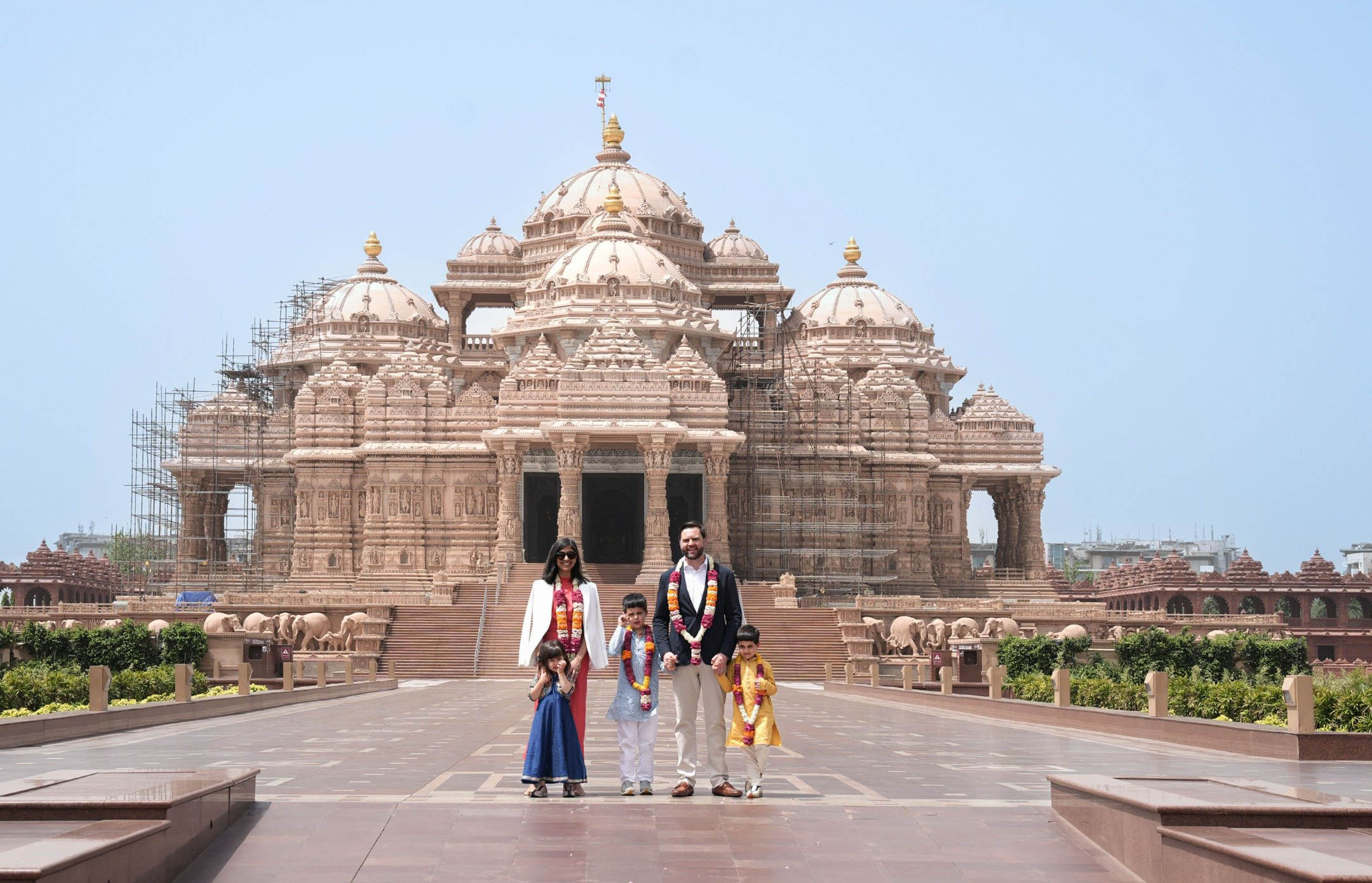 “The U.S. Vice President JD Vance, Second Lady Usha Vance and their children visited Swaminarayan Akshardham in Delhi ‘their first stop in India’ experiencing its majestic art, architecture and timeless values of faith, family and harmony.” “The Vance family explored the mandir’s majestic art and architecture, experiencing India’s heritage and cultural depth and they appreciated the messages of harmony, family values, and timeless wisdom embodied in the Akshardham campus,” it added.