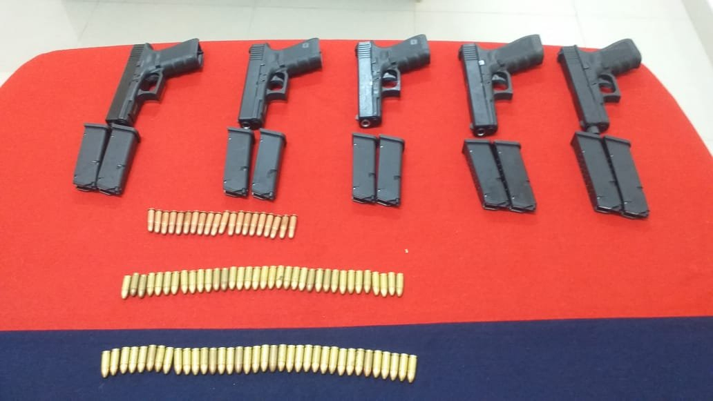 Officials said the cache contained five Glock pistols, ten magazines and 91 rounds.