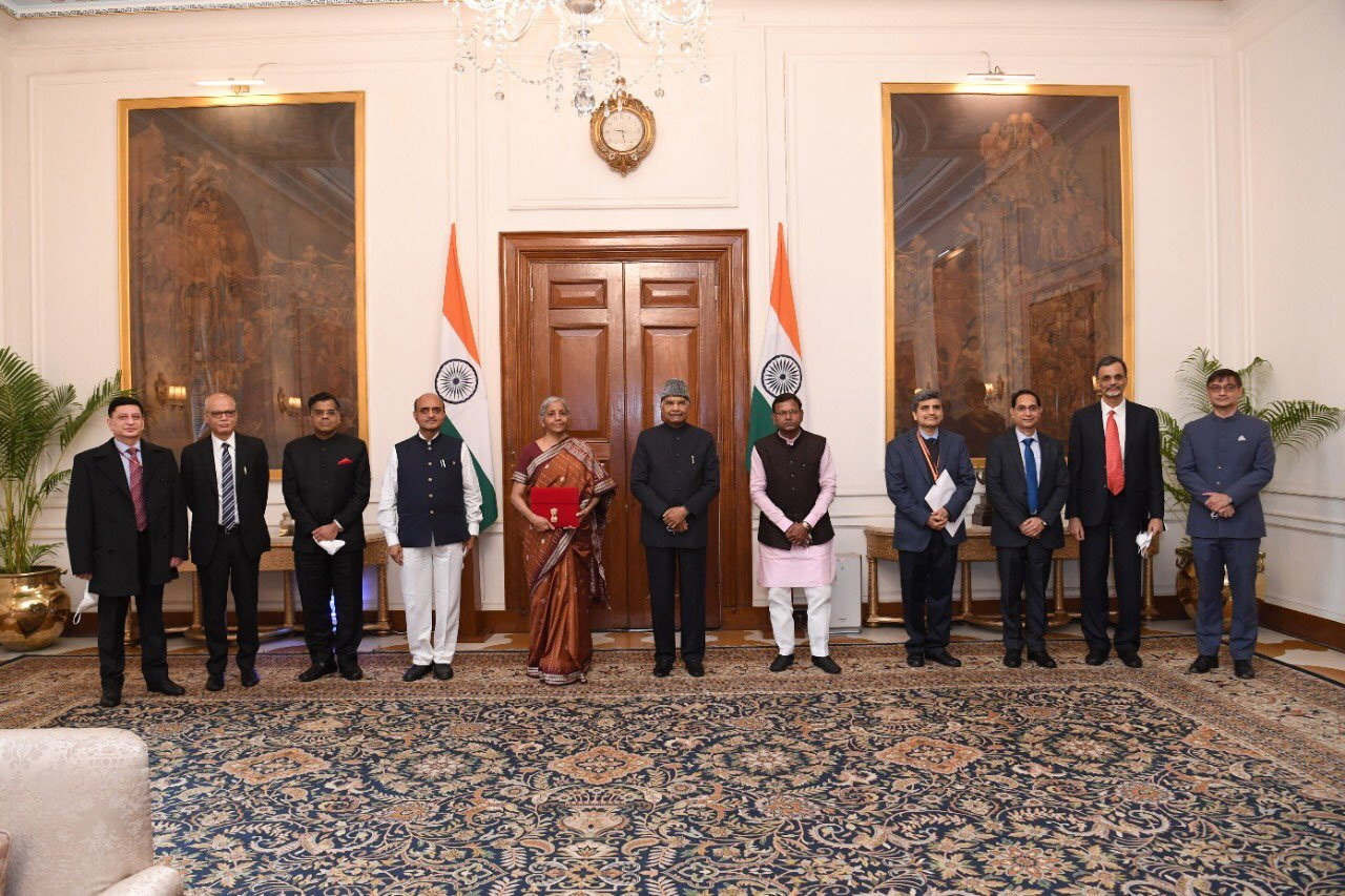 Taking to Twitter, Rashtrapati Bhavan said, “Nirmala Sitharaman, Minister of Finance along with Ministers of State for Finance, Dr Bhagwat Kishanrao Karad, Pankaj Chaudhary, and senior officials of the Ministry of Finance, called on President Ram Nath Kovind before presenting the Union Budget 2022-23.”