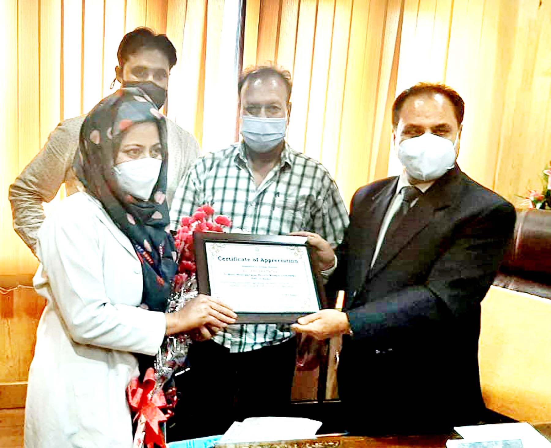 A spokesperson of the Directorate of Health Services Kashmir said that the Director in his video message appreciated her work amid the pandemic situation.