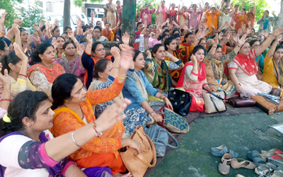 JAMMU, Sept 11: The protest dharna of Jammu Kashmir Female Multipurpose Health Workers in support of their demands entered 16th day today.