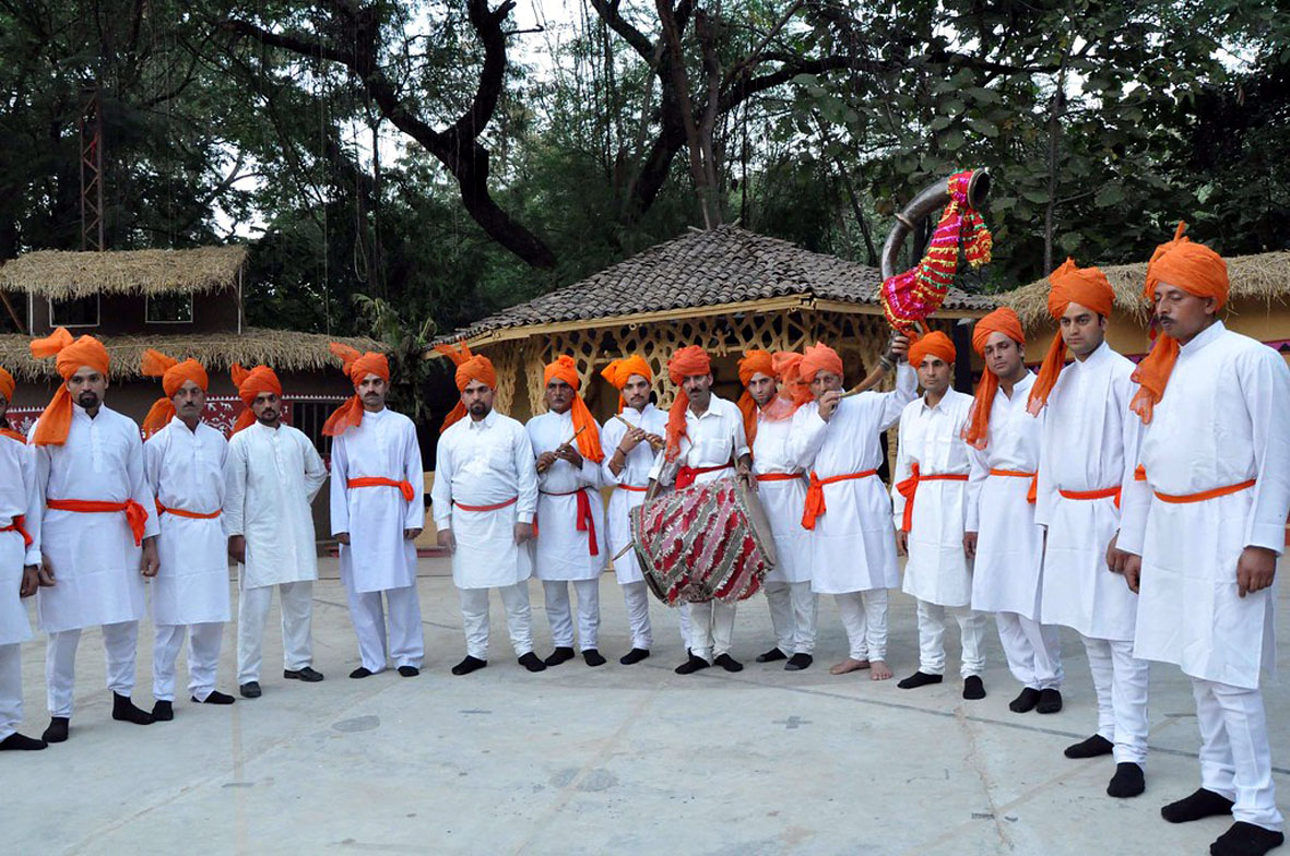 BHAAKH: Bhaakh is a musical form usually sung by a group of folk singers without any musical instrument.The main purpose of Bhaakh is to give pleasure connected with human sensibilities.While singing Bhaakh,the singers sit on their legs,put one of the hands in their ear and singing jointly with the main singer adjusting his rhymes with those of others.
