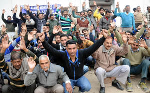 Meanwhile, similar protest also continued in main store at Srinagar also.