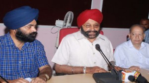 FORCE president Harbans Singh addressing press conference at Jammu on Saturday. —Excelsior/Rakesh