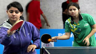 Forehand shots being executed by young peddlers in the match of the 37th Stag Inter-District Table Tennis Championship at Indoor Complex in MA Stadium on Thursday. -Excelsior/Rakesh