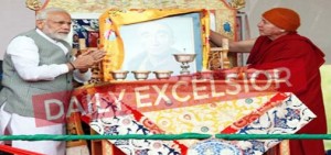 Prime Minister Narendra Modi paying tributes to Kushok Bakula in Leh on Saturday. —Excelsior/Morup Stanzin