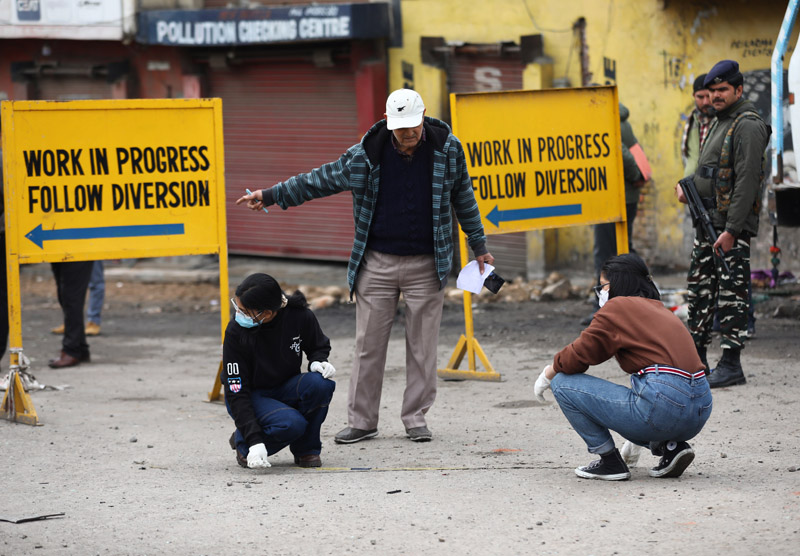 Forensic experts examine the site of blast at Narwal on Saturday. —Excelsior/Rakesh By Daily Excelsior - January 22, 2023 Share FacebookTwitterWhatsAppPinterestLinkedinCopy URLTelegramEmailTumblrReddItPrintKoo Forensic experts examine the site of blast at Narwal on Saturday. —Excelsior/Rakesh Forensic experts examine the site of blast at Narwal on Saturday. —Excelsior/Rakesh Follow our WhatsApp channel