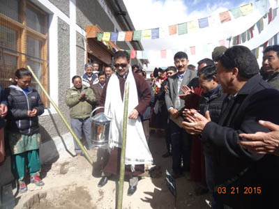 CEC, LAHDC, Leh Rigzin Spalbar going to plant a tree at the compound of a community hall in Leh.