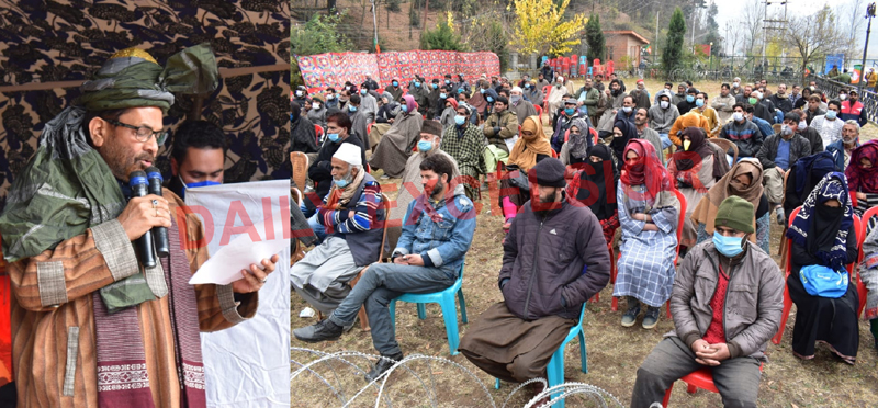 Union Minister Mukhtar Abass Naqvi addressing the party workers at TRC Kupwara on Thursday. —Excelsior/Aabid Nabi
