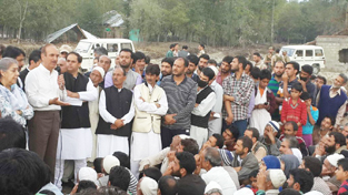 Former Chief Minister, Ghulam Nabi Azad and AICC general secretary Ambika Soni interacting with flood hit people on Wednesday.