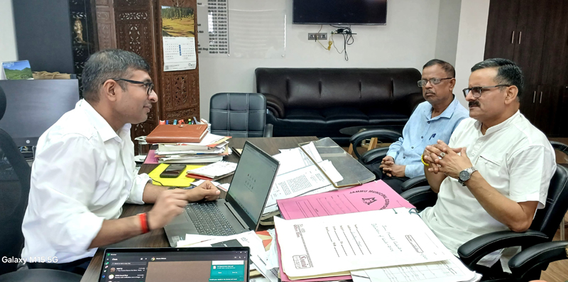 Former Councilor and senior BJP leader Sanjay Baru during a meeting with JMC Commissioner, Rahul Yadav at Jammu on Saturday.