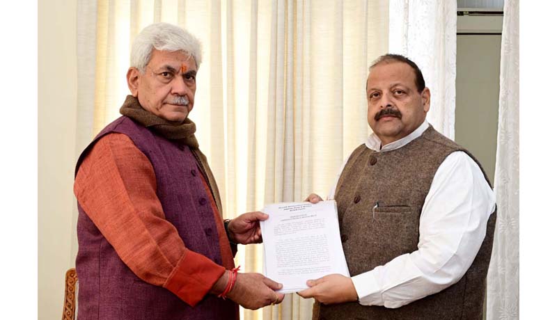 Former Legislator Devender Singh Rana handing over a memorandum to LG Manoj Sinha. By Daily Excelsior - December 20, 2022 Share FacebookTwitterWhatsAppPinterestLinkedinCopy URLTelegramEmailTumblrReddItPrintKoo Former Legislator Devender Singh Rana handing over a memorandum to LG Manoj Sinha. Follow our WhatsApp channel