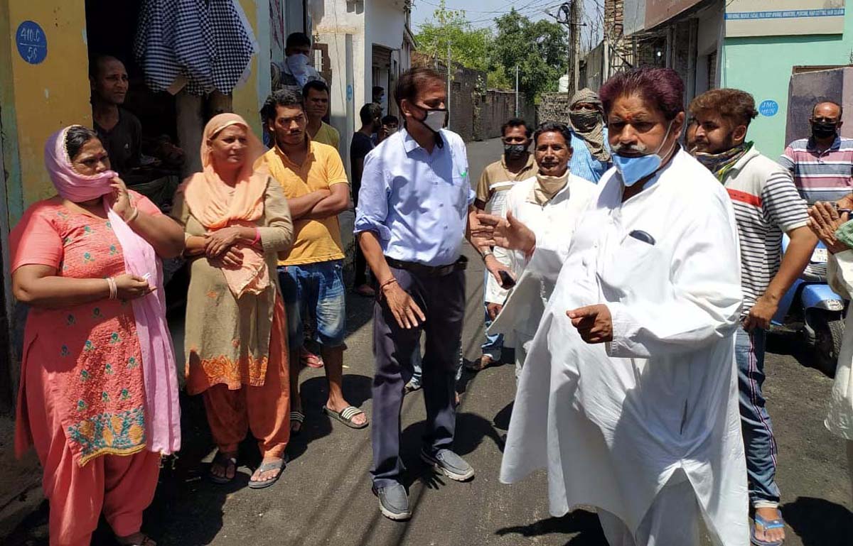 Former Minister Raman Bhalla interacting with people in Gangyal area of Jammu.