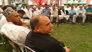 Former Minister  Shabir Khan during workers’  meeting at Rajouri on Thursday.