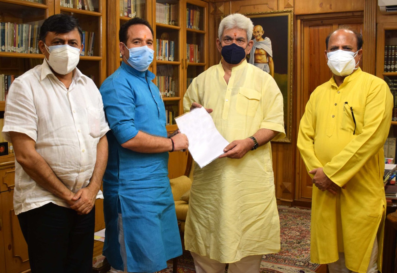 A delegation comprising of former Ministers- Sunil Sharma and Devinder Kumar Manyal, and former Legislator, Vibodh Gupta submitted a memorandum of demands to the Lt Governor pertaining to strengthening of PRIs, payments under MGNREGA, welfare issues of Daily-wagers, strengthening road network, extension of benefits under Ayushman Bharat in view of Covid pandemic.