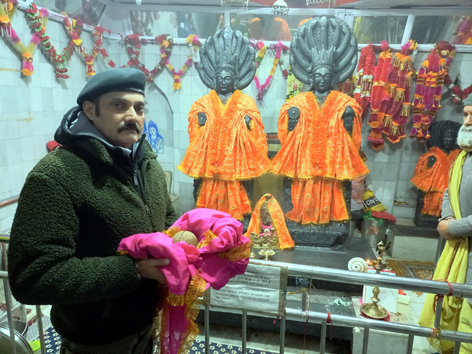 Former MLC Vikramaditya Singh paying obeisance at Vasuki Nag Temple in Bhaderwah.
